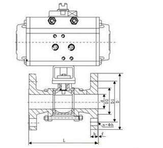 進口氣動三片式法蘭球閥 外形結(jié)構(gòu)圖