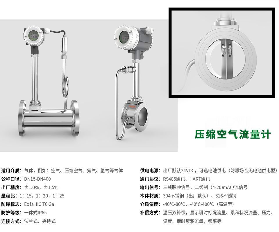 為什么使用抗振型壓縮空氣流量計?由于管道振動產生頻率,從而采集此頻率信號轉化成流量信號,最終導致虛假流量產生。即使出氣口做了減振處理(比如金屬膨脹節、儲氣罐等措施)也依然無法很好消除管道振動。 壓縮空氣流量計量是工業過程中極重要的環節,選型更是一件很慎重的事情,首先必須了解現場工藝流體的性質,充分考慮到精確度、測量環境、重復性、測量范圍、壓力損失和響應時間等因素,才能對選型作出正確判斷。隨著傳感器技術和計算機技術的進步,壓縮空氣流量測量將向高可靠性、廣泛適應性及良好的信號傳輸等方面發展