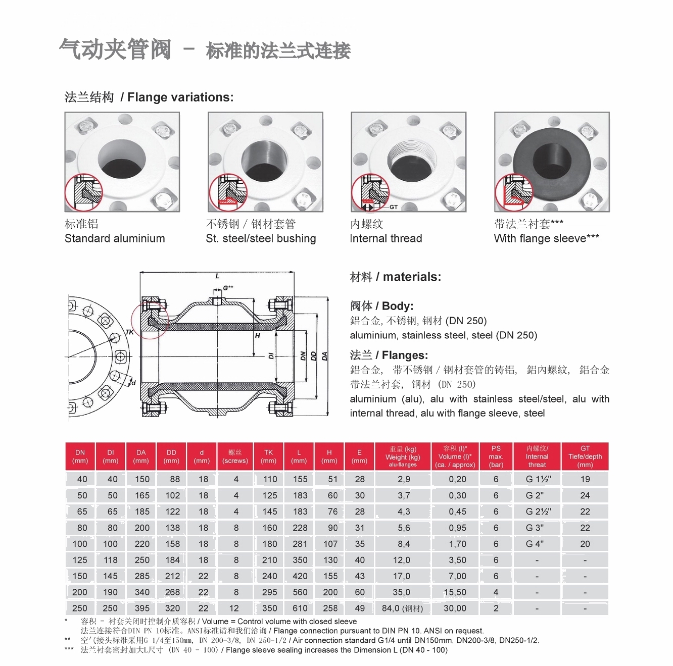 ◆所有的法蘭式夾管閥的外殼均呈扁平的橢圓形,因此保證了較低的壓縮空氣消耗,這不僅意味著可以節(jié)省能源,而且同時也確保了氣動夾管閥預(yù)定的唇形彎折方向。