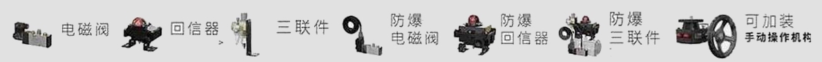切斷型附件:單電控電磁閥、雙電控電磁閥、限位開關(guān)回訊器。