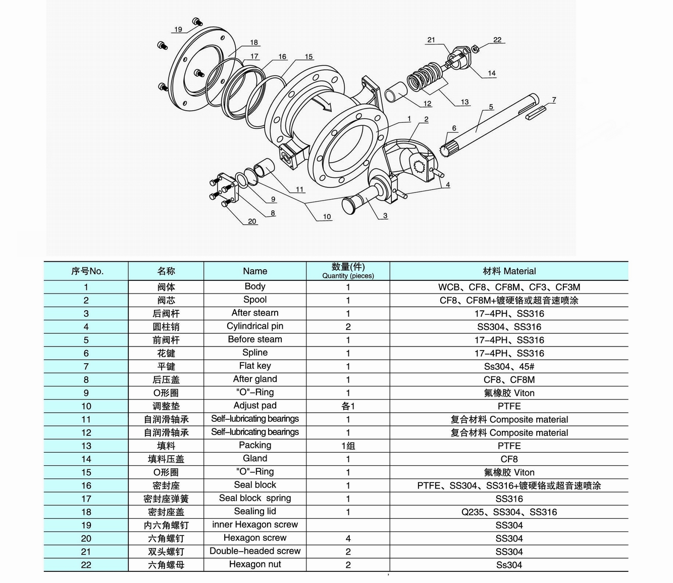 防漏耐用的閥座在其外徑處襯有帶不銹鋼內芯PTFE杯形或是O型密封圈,閥座用截面較大